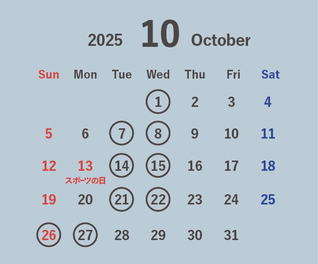 9月に引き続き、10月もお休みがいつもと少し異なります。